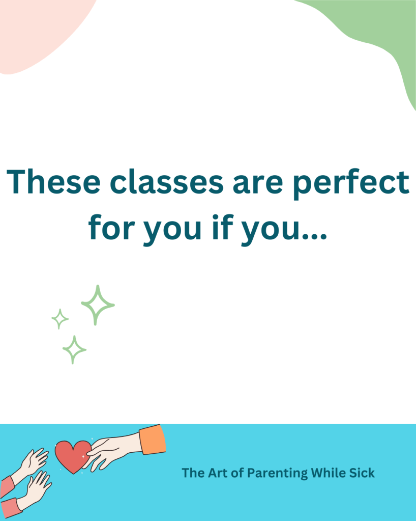 My hope is that these classes will help parents realize they are part of a dynamic, incredible community of more than a billion other parents living with unpredictable and sometimes debilitating chronic conditions and that they are not alone.