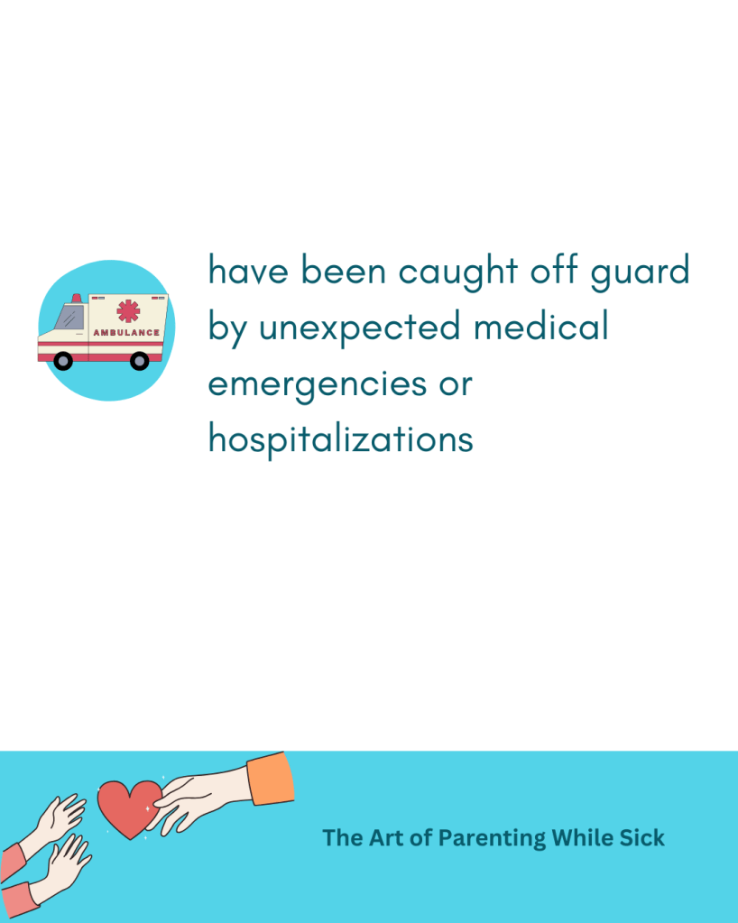 They don’t know how to talk to their child about new diagnoses, flare ups, or a worsening condition; they are anxious about when the next unexpected hospitalization or medical emergency might strike; they struggle with the six big emotions common to living with a chronic condition—grief, guilt, anger, fear, anxiety, and shame; they aer unsure of how to plan for the future; they are don’t know what to talk about with their doctors when it comes to fertility, medication during pregnancy, childbirth, parenting limitations, and so on.